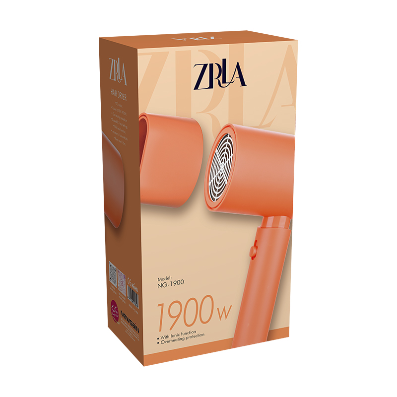 • DC motor, power:1600W-1900W. • ABS material. • 2 speed & 3 heat settings. • With Ionic function. • Accessory:1 concentrator. • Power cord 1.6m. • COLOR BOX QTY: 24 PCS/CTN CBM: 0.067M³/CTN