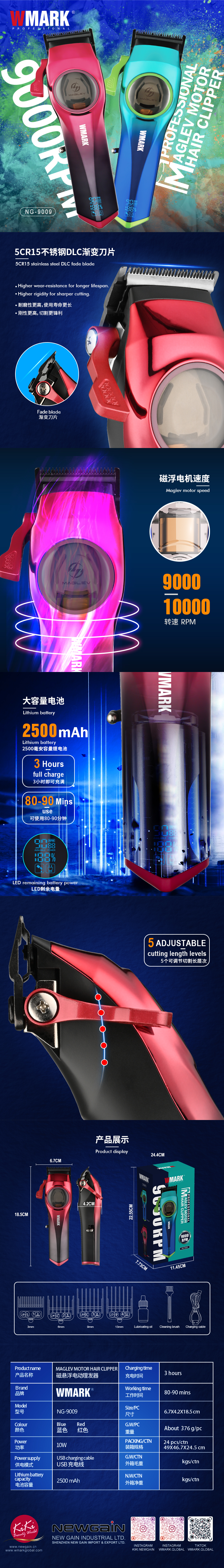 • High quality, precision 5CR15 Stainless steel fade blades with DLC process.
