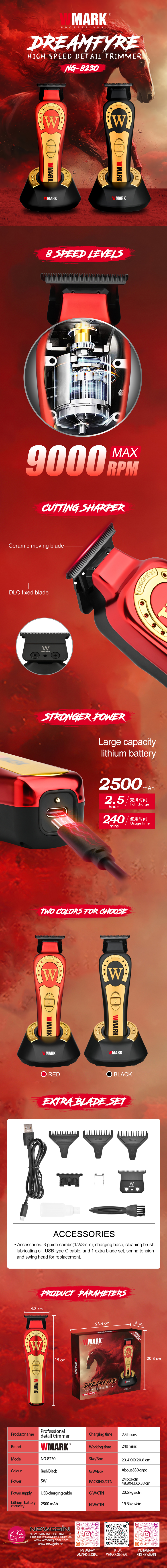 ● Accessories: 3 guide combs(1/2/3mm), cleaning brush, 1 extra blade set, spring, blade holder, charging base, lubricating oil and USB-C charging cable.
