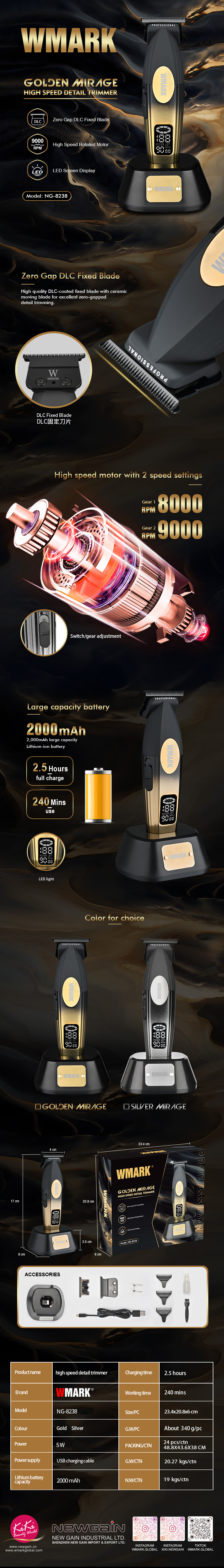 ● Accessories: 3 guide combs(1/2/3mm), cleaning brush, 1 extra blade set, spring, blade holder, charging base, lubricating oil and USB-C charging cable.